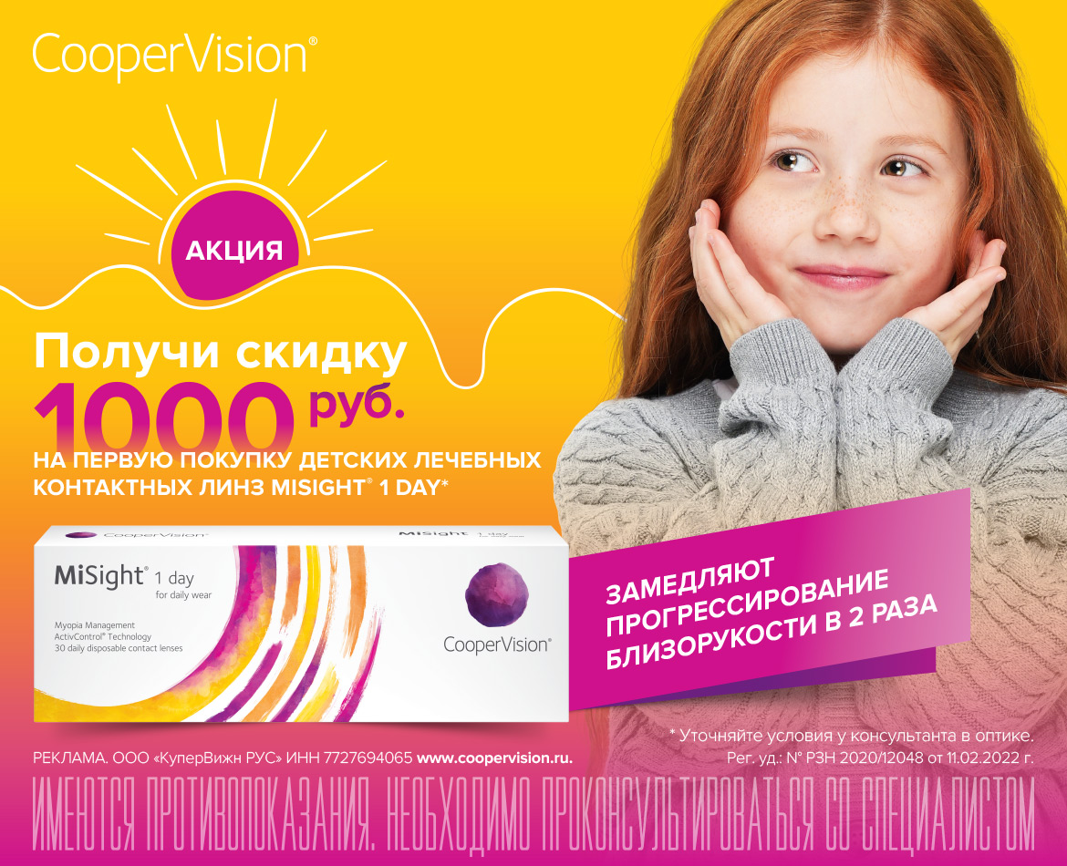 СКИДКА 1000 руб. на первые 2 упаковки линз MiSight